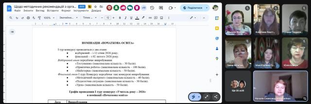 17 грудня 2025 року відбулася зустріч з учасниками Всеукраїнського конкурсу «Учитель року – 2026» у номінації «Початкова освіта», яка об’єднала понад 40 педагогів, що виявили бажання взяти участь у зазначеному заході.