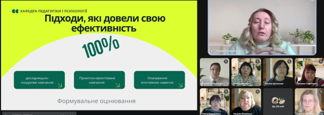 Галина Ломакіна, доцентка кафедри педагогіки і психології Донецького ОблІППО, кандидатка педагогічних наук, доцентка, директорка КПНЗ «ДОМАНУМ», у своїй доповіді розглянула підходи до формування дослідницької компетентності учнів у сучасному освітньому середовищі, її ключові складові та ефективні методи розвитку.