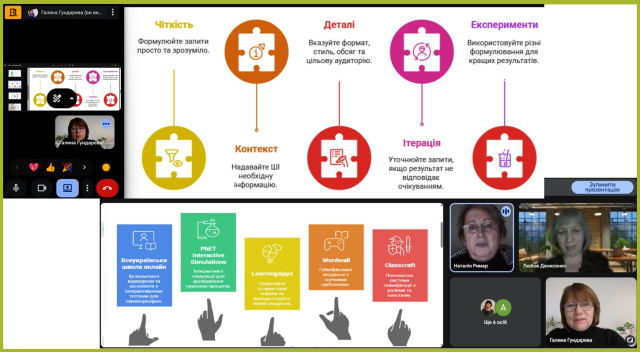 3.2. Під час підвищення кваліфікації з теми «Базове предметне навчання в НУШ: нові обрії» учителі хімії, які забезпечуватимуть реалізацію Державного стандарту базової середньої освіти в другому циклі, опрацювали сучасні інструменти і методики якісного викладання хімії у 8-му класі; поглибили розуміння ключових принципів та ідей реформи «Нова українська школа». Педагоги розглянули шляхи інтеграції знань і навичок з інших природничих дисциплін для формування цілісної картини світу в учнівства й опанували практичні навички використання штучного інтелекту (ШІ) і новітніх цифрових платформ для моделювання експериментів, персоналізації навчання та створення інтерактивного контенту.