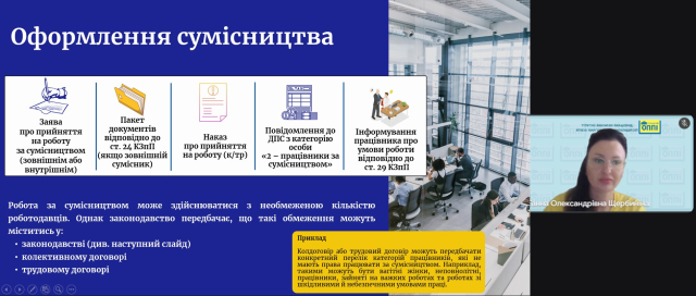 Під час управлінського практикуму «Сумісництво, суміщення, призупинення і простій: оформлюємо правильно» керівники ЗЗСО, спеціальних ЗЗСО та ЗП(ПТ)О поглибили знання щодо правильного оформлення трудових відносин за сумісництвом і суміщенням, розглянули зразки відповідних заяв і наказів, опанували алгоритм дій при встановленні гнучкого графіку роботи сумісникам, а також опрацювали особливості переведення працівників на простій або призупинення.