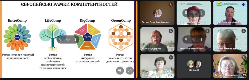 Протягом навчання учасники поглиблювали знання про європейські рамки компетентностей – «EntreComp», «DigComp», «LifeComp» та «GreenComp», вивчали їхні компоненти, порівнювали з українськими. Робота в групах була спрямована на практичне опрацювання складників кожної компетентності – знань, умінь і ставлень, а також порівняння пов’язаних між собою компетентностей різних рамок.