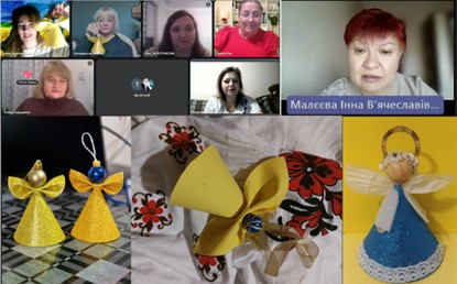 Тетяна Заярна, учителька технологій / трудового навчання Лиманського ліцею № 2 Лиманської міської ради Донецької області занурила педагогів у світ народознавства й українських традицій, пов’язаних з прикрашанням оселі до зимових свят. Вона презентувала святковий новорічний та різдвяний декор з доступного природного матеріалу – талаша (висушеного кукурудзяного листя), зосередившись на особливостях роботи з талашем і технологічній послідовності виготовлення важливого персонажа різдвяної історії – Янгола, а також різдвяного віночка, новорічної сніжинки та зірки, ялинкових прикрас.