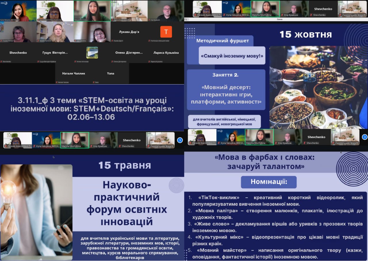 Марина Мочикіна, методистка відділу мовно-літературної та мистецької освіти, представила актуальні методичні заходи та ресурси для вчителів німецької мови, розповіла про можливості підвищення кваліфікації для педагогів області, співпрацю з міжнародними освітніми платформами та впровадження нових дидактичних підходів.