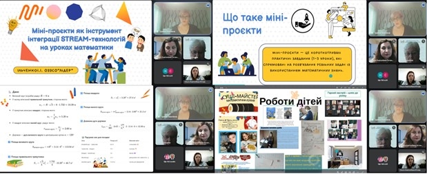 Ірина Ільченко, учителька математики Опорного закладу загальної середньої освіти «Лідер» Краматорської міської ради Донецької області, представила мініпроєкти як інструмент інтеграції STREAM-технологій на уроках математики, спрямовані на розв’язання реальних життєвих завдань із використанням математичних знань і сформованих компетентностей.