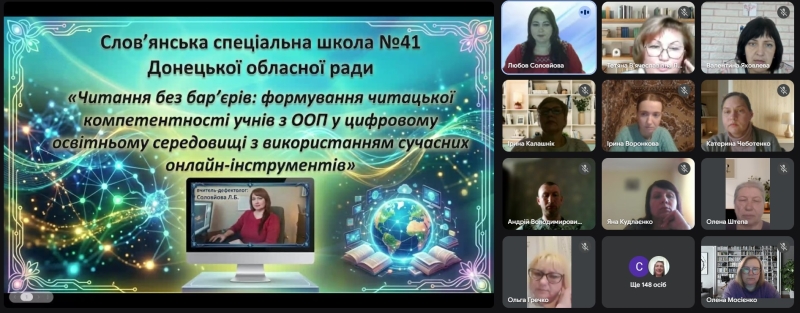 Виступ Любові Соловйової, учителя-дефектолога Слов’янської спеціальної школи № 41 Донецької обласної ради, було присвячено практичним стратегіям формування читацької компетентності учнів з ООП через інтеграцію інноваційних онлайн-інструментів у цифрове освітнє середовище, що забезпечує безбар’єрний доступ до знань для кожного школяра.