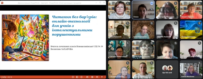 Практичний кейс ефективних методів використання онлайн-технологій для подолання бар’єрів у читанні та розвитку мовленнєвих навичок в учнів з інтелектуальними порушеннями, забезпечуючи цифрову доступність навчання, у своєму виступі презентувала Валентина Захарова, учитель-дефектолог Новожеланівської спеціальної школи № 39 Донецької обласної ради.