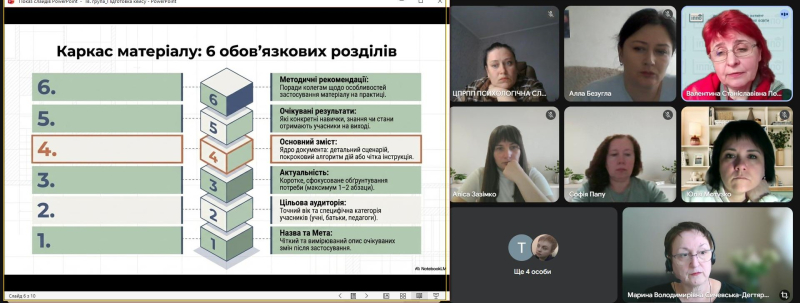 Науковий керівник творчої групи Валентина Поуль, декан факультету підвищення кваліфікації педагогічних кадрів Донецького ОблІППО, кандидат психологічних наук, доцент, доцент кафедри педагогіки і психології, акцентувала увагу учасників зустрічі на змісті майбутніх матеріалів кейсу, які фокусуватимуться на розвитку життєстійкості як здатності долати труднощі та відновлюватися після кризових подій, а також на превенції будь-яких форм дискримінації та жорстокого поводження.