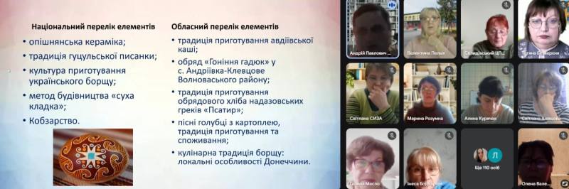 У своєму виступі «Виховання крізь призму нематеріальної культурної спадщини» Дубяга Андрій, методист відділу національного виховання, позашкільної та громадянсько-історичної освіти Донецького обласного інституту післядипломної педагогічної освіти, ознайомив учасників з національними й обласними елементами, які ввійшли до переліку національної культурної спадщини, а також окреслив формат використання національної культурної спадщини в освітньому процесі. На прикладі виготовлення обухівського «шитого» рушника надав практичні рекомендації впровадження національної культурної спадщини України у викладання різних предметів.