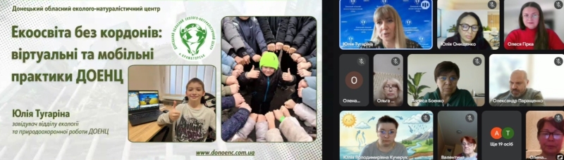 Завідувач відділу екології та природоохоронної роботи Донецького обласного еколого-натуралістичного центру Юлія Тугаріна представила віртуальні та мобільні практики ДОЕНЦ, авторські програми, розроблені педагогами Центру. Презентувала електронну бібліотеку закладу, віртуальний екомузей 5R, онлайн-активності та виїзні кампанії, організовані для педагогів і вихованців.