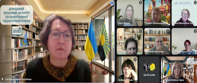 Світлана Гарна, проректор з інноваційної та методичної роботи, висвітлила актуальні питання впровадження спірального підходу в навчанні та перебіг обласного конкурсу-проєкту «Цифрова Донеччина: від інструменту до результату».