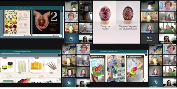 Модератор зустрічі Ольга Кітова, доцент кафедри природничо-математичних дисциплін та методики їх викладання Донецького ОблІППО, кандидат педагогічних наук, доцент, привітала учасників заходу та наголосила на символічності проведення онлайн-майстерні напередодні Великодня; акцентувала увагу на освітньо-виховних та інтеграційних можливостях технологічної галузі, її значенні для розвитку інтересу до духовних надбань народу й культурної спадщини українського суспільства.
