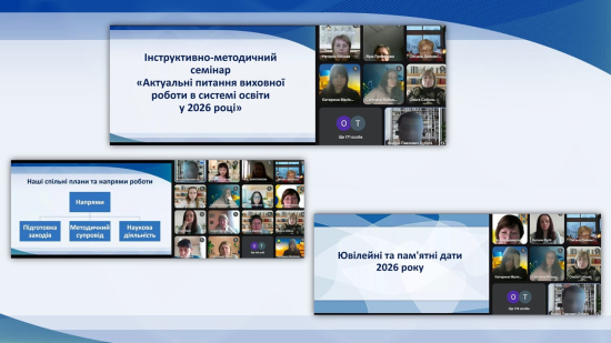 15.01.2026 - Інструктивно-методичний семінар «Актуальні питання виховної роботи в системі освіти у 2026 році» (для відповідальних за організацію виховної роботи в громадах, заступників директора з ВР, педагогів-організаторів ЗЗСО, ЗПО та ЗП(ПТ)О, класни