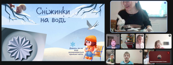 Під час заняття на учнів чекала захоплива мандрівка у світ STEAM: неймовірні експерименти з льодом та іншими зимовими «інгредієнтами». Для цього учасникам запропонували заздалегідь підготувати необхідні інструменти та пристосування (сіль, воду, папір, олівці, лід тощо). Діти разом зі спікеркою Марією Поляковою розкрили таємниці фізики та хімії через захопливу гру, беручи участь у дослідах «Сніжинки на воді», «Крижана рибалка», «Пір’їнка пінгвінчика», «Кольорові кульки».