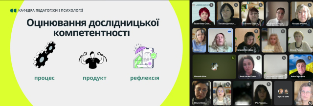 Галина Ломакіна, доцентка кафедри педагогіки і психології Донецького ОблІППО, кандидатка педагогічних наук, доцентка, директорка КПНЗ «ДОМАНУМ», у своїй доповіді розглянула підходи до формування дослідницької компетентності учнів у сучасному освітньому середовищі, її ключові складові та ефективні методи розвитку.