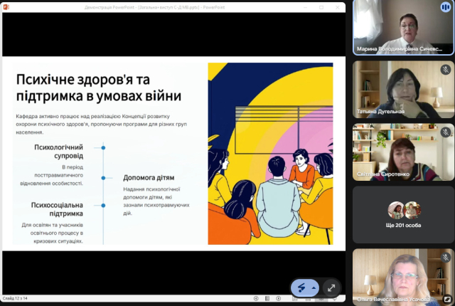 «Кафедра педагогіки і психології є осередком дієвого впровадження сучасних технологій психолого-педагогічного супроводу розвитку особистості», – зазначила у своєму виступі Марина Сичевська-Дегтярьова, в.о. завідувача кафедри педагогіки і психології, завідувачка відділу психосоціального, фізичного здоров’я, розвитку особистості та освітньої безбар’єрності Донецького ОблІППО. Кафедра вибудовує свою роботу так, щоб забезпечити повну реалізацію державної політики у сфері забезпечення психічного здоров’я населення, розширюючи спектр освітніх програм (до програм підвищення кваліфікації включено нові модулі з питань психічного здоров’я, інклюзії, гендерної рівності, запобігання насильству, психосоціальної підтримки в умовах війни та післявоєнного відновлення), активізуючи роботу з освітянами, дітьми та батьками, запроваджуючи інноваційні програми.