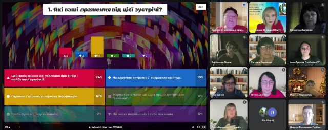 Яким бачать своє майбутнє учні? Катерина Чиж, кар’єрний координатор територіальної громади, висвітлила ключові показники анкетування, організованого в межах проєктної діяльності.