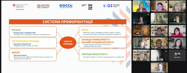 Регіональний координатор проєкту Тетяна Колган разом із менторами Дмитром Горбачуком, Вікторією Щербатюк презентували учасникам ключові аспекти національної пілотної системи профорієнтації дітей і підлітків, окреслили її мету, завдання і терміни.
