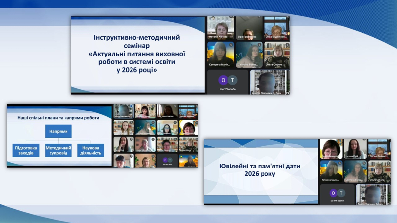 15 січня 2026 року відбувся інструктивно-методичний семінар «Актуальні питання виховної роботи в системі освіти у 2026 році». Учасниками семінару стали понад 170 освітян області, відповідальних за організацію виховної роботи на місцях.