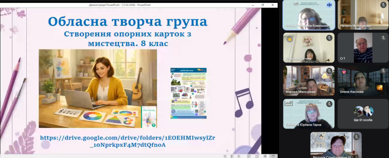 13 лютого 2026 року для вчителів мистецьких дисциплін Донеччини в дистанційному форматі відділом мовно-літературної та мистецької освіти Донецького ОблІППО проведено методичний онлайн-гайд «Методичний 2026 рік: стратегії та акценти», який об’єднав понад 100 освітян області.