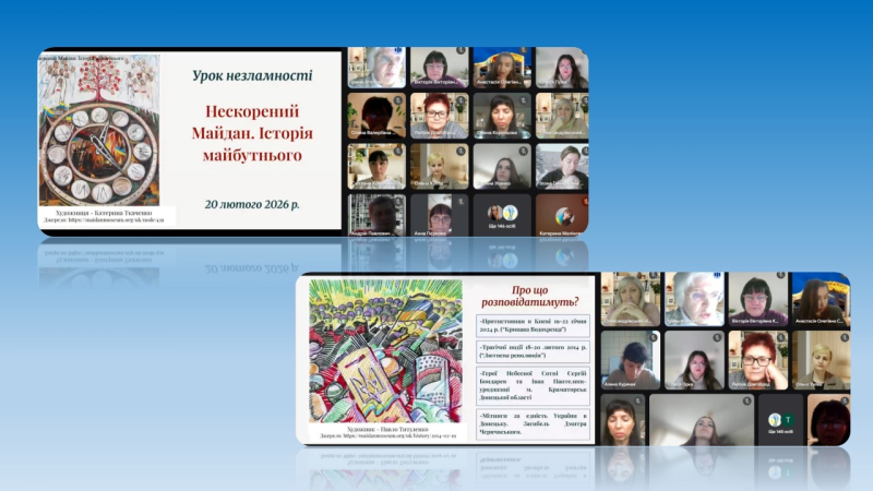 16 лютого 2026 року в дистанційному форматі відбулася презентаційна сесія «Герої Небесної Сотні: пам’ятаємо заради майбутнього». Учасниками заходу стали понад 150 педагогів області, відповідальних за організацію виховної роботи в закладах освіти.
